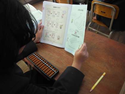 昨日〔12月4日(木)〕、珠算教育連合会から来ていただいた講師の先生にそろばんの授業を2校時と3校時に行っていただきました。3校時には、時間をはかりながら、色々な級の問題に取り組みました。上手くできる様になってくると「もっと、もっと(やりたい)」とのリクエストもたくさん出ていました。十段の問題の難しさには、みんな、とても驚いていました。