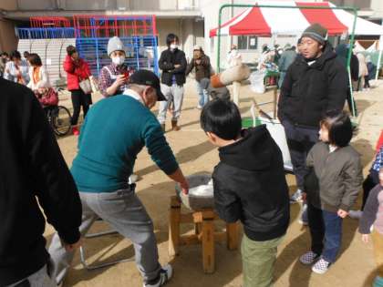 もちつき体験にたくさんのこどもたちが参加してくれました。自分たちがついた、おもちの味は格別だったと思います。