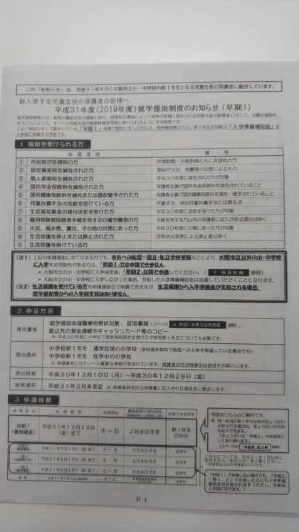 12月10日より、就学援助(早期1)申請の受付をしています。