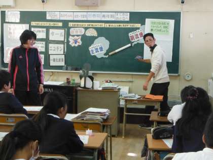 先週の「くすりの正しい使い方」講座に続き、喫煙予防に関する授業が行われました。たばこの煙の実験を行ったり、実際のたばこのパッケージの注意文言を回覧したりして、具体的に未成年者のたばこが法律で禁止されていること等を正しく学習しました。
