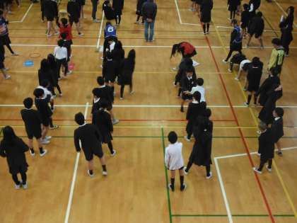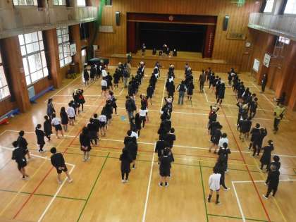 今朝の児童集会は、たてわり班での「ボール送りゲーム」でした。制限時間内に先頭から頭越しにボールを送り、最後尾からは足の間を通して前に戻します。制限時間はだんだん短くなっていきました。最後は制限時間15秒でしたが、みんな、チームワークよく、力を合わせて頑張りました。