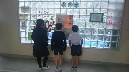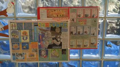 ※上の写真は、子どもたちが玄関の「ひろば」のコーナーに掲示されたこども新聞の抜粋記事を読んでいるところです。下は今週号の抜粋記事の写真です。毎週、図書支援員の先生が掲示をしてくれています。