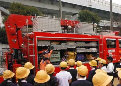 上の写真はいろいろな消防車の説明をしてもらいました。