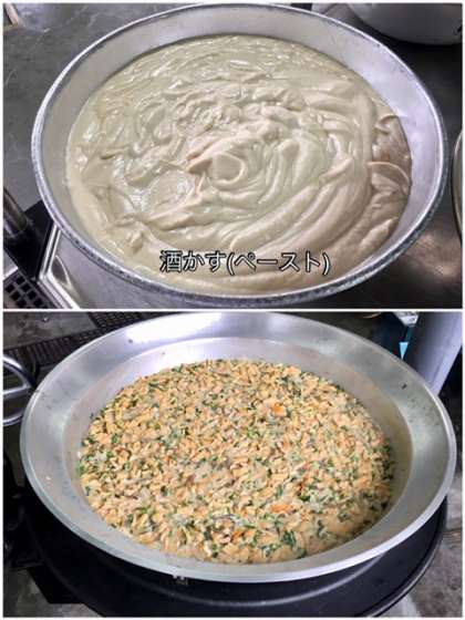 かす汁は年に1回、この時期に登場する献立です。酒かすのペーストが入っており、体のあたたまる汁ものです。