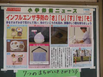 本日〔1月18日(金)〕10時時点での3年生以外(学年休業中)のインフルエンザで欠席している児童の人数は5名です。昨日より1名、増えています。この週末も児童の健康管理をよろしくお願いします。