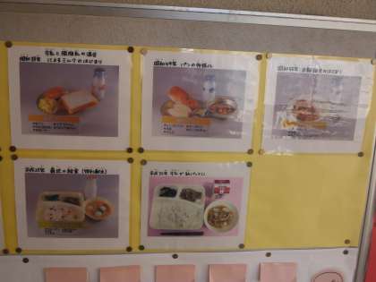 月初より、給食室前に過去からの給食の写真が9枚、掲示されています。食育だより(1月号)でもお知らせしましたが、1月24日(木)から30日(水)は全国学校給食週間です。本校では21日(月)から25日(金)を給食週間として「給食がんばりカード」等の取り組みを行っています。ご家庭でもぜひ、給食の思い出などを話題にしてみてください。