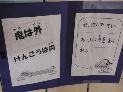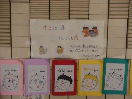 校内掲示 「オニは外 けんこうは内」