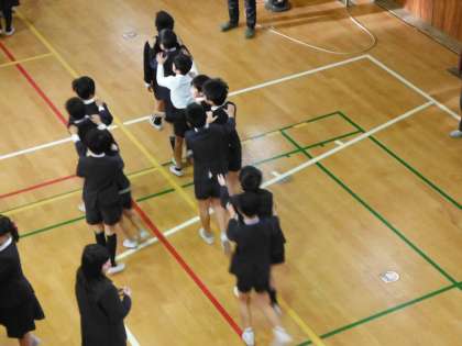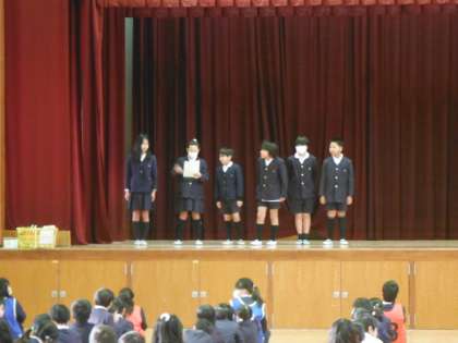 今朝の児童集会は「じゃんけん列車」でした。じゃんけんで負けたら、うしろにつながっていくという単純なゲームなのですが、毎回とても盛り上がります。体もあたたまって、さぁ、今日の勉強のスタートです!