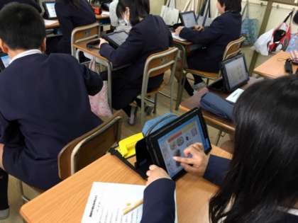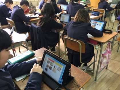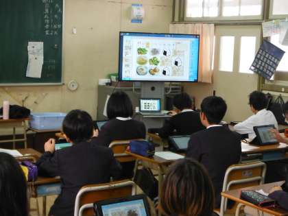 量のバランス(主食:主菜:副菜=3:1:2)や彩りのバランスも大切だと学習し、タブレットを使って「マイ弁当」を考えていきました。