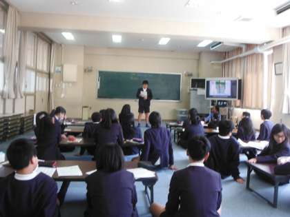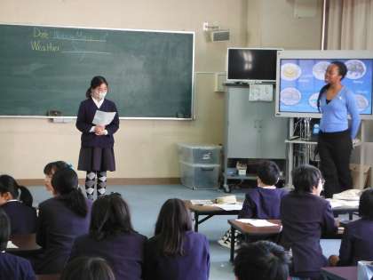 高学年の授業風景です。英作文を行い、一人づつ、全員が前で発表しました。