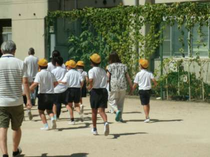 9月1日は「防災の日」です。九条東小学校では、13時30分から避難訓練を実施しました。今日は、地震と津波を想定した訓練です。津波の避難では、全員で4階教室まで上がりました。