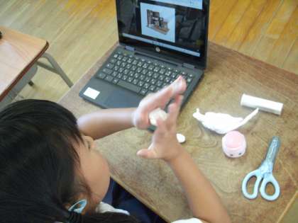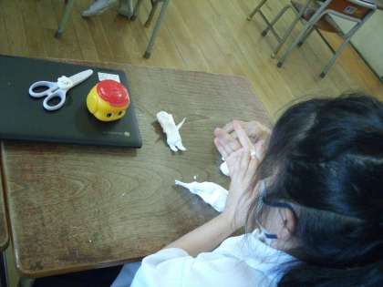 図画工作で「おうちをつくろう」に取り組んでいます。今日は、まず最初に、紙ねんどで、友だちを作っています。