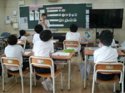 栄養教諭の先生と「朝ごはんについて考えよう」に取り組みました。朝ごはんを食べると「脳・体・おなか」の働きがよくなります。後半は、朝食でとりたい栄養素について学びました。