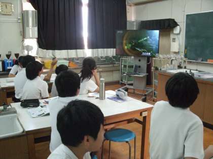理科の学習です。月の表面に注目し、ビデオを視聴しました。
