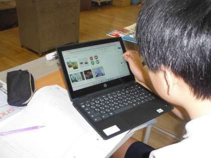 たくさんの情報を集めるべく、一人一台パソコンで調べて