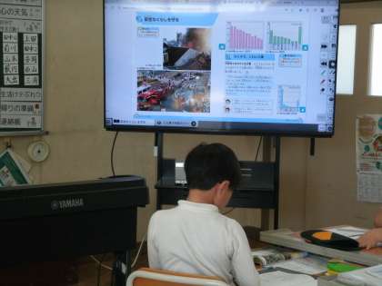 「大阪市では、どれくらい火事が起こっているのだろう」の学習です。資料から読み取っていました。