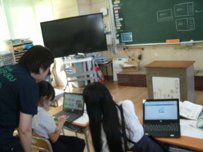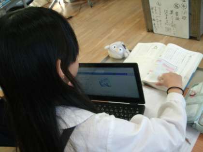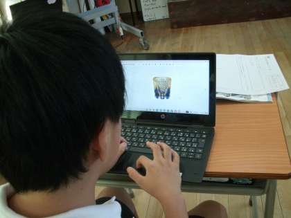 「和の文化を発信しよう」に取り組んでいます。テーマを決めてポスターを作ります。江戸切子やひな人形の情報を集めていました。