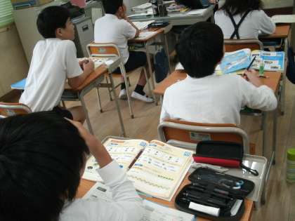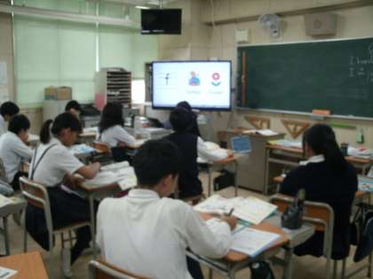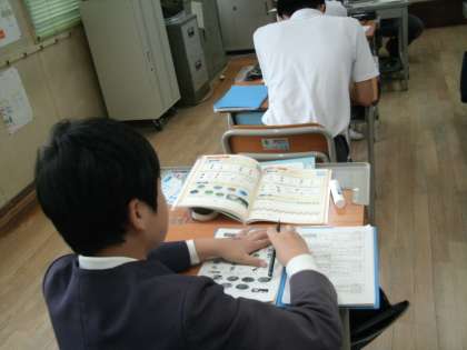 英語の学習です。「F」と「V」の発音をヒアリングしながら、聞き取り問題に取り組んでいました。