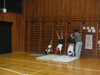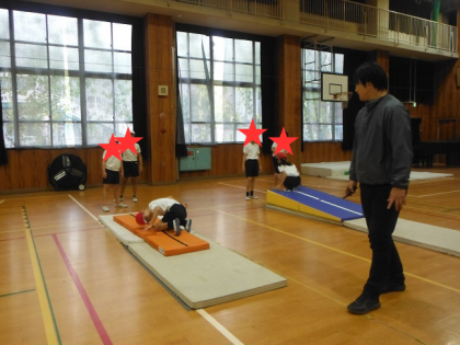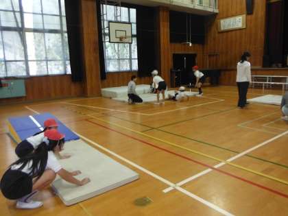 マット運動の練習中でした。