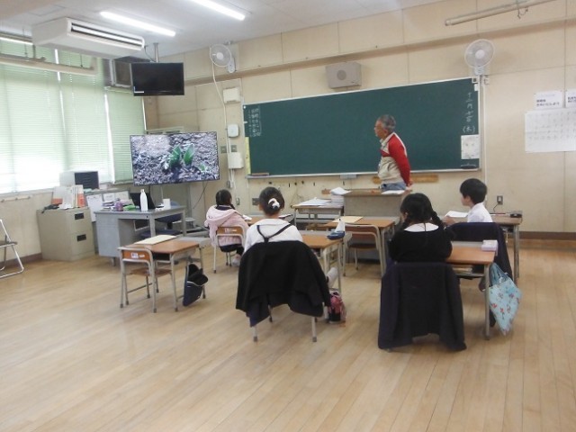 1年生はヒヤシンスのお世話をした後、キャリアパスポートに