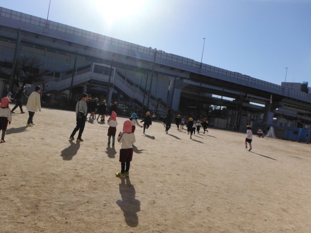 今日は九条幼稚園の園児の皆さんが、本校でたこあげを