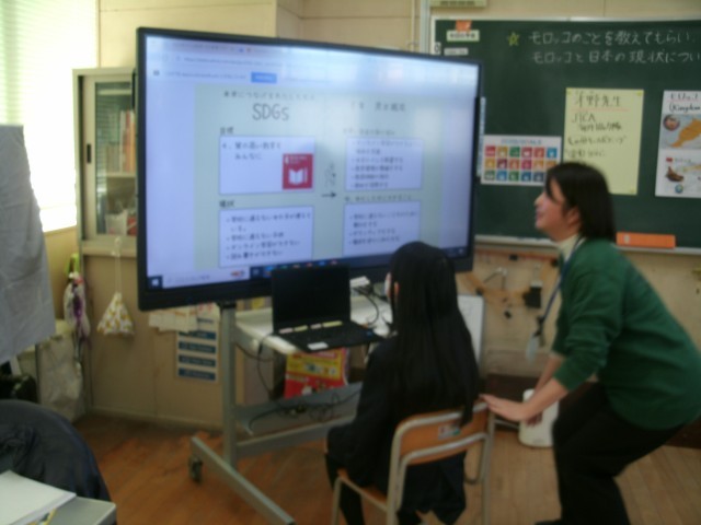 今日の3時間目、モロッコ滞在中のJICA(ジャイカ)海外協力隊の方と交流授業(teams)を