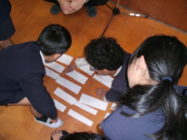 司会の人が言ったメニューの材料を一個ずつ班で集めます。例えばオムライスなら、卵、鶏肉、