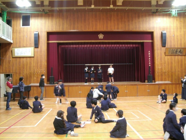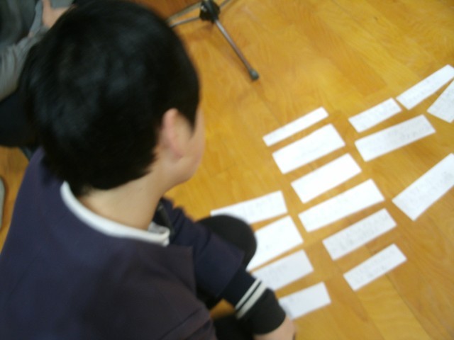 今日の集会は「買い物ゲーム」です。集会委員のメンバーが、考えたオリジナルゲームです。