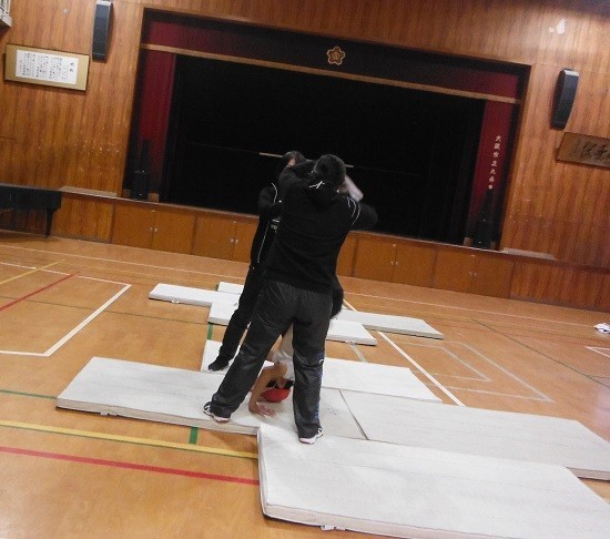 まずは、倒立前転の練習をして、倒立→ブリッジに入るようです。