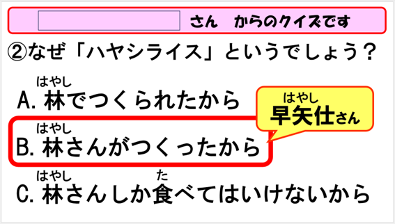 ハヤシライスは、はやしさんが作ったのでこの料理名がついたと言われています。(諸説あり)