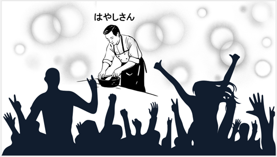 そのイメージ画像(3枚目)を見て、「はやしさんありがとーう!」と言いながらおいしいハヤシライスをみんなでいただきました。