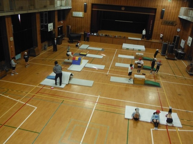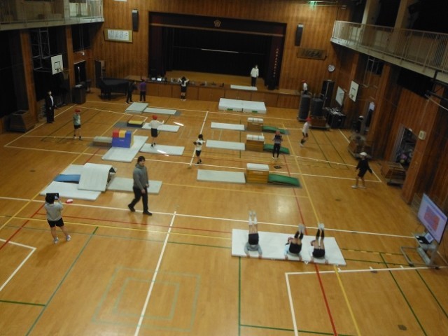 跳び箱、台上前転に挑戦しています。