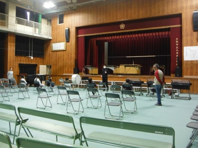 1・2年生は、入学式で披露するお迎え演技の練習を