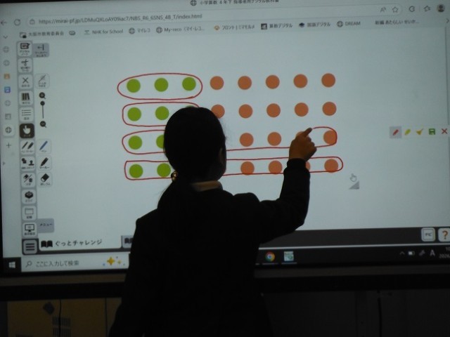 デジタル教科書に書き込みながら説明をしていました。