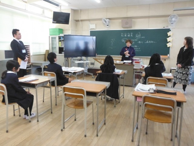 6年生は、専科の先生方のご挨拶を聞いているところ