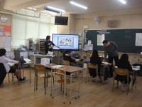 5年生、英語の学習の様子です。自分の町を紹介しようの単元でした。モデルとして横浜...