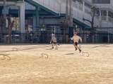 大なわをしながら、ボールキャッチの練習をしました。なかなか難しいようです。