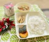 きょうの献立は、ごはん、きびなごてんぷら、含め煮、焼きかぼちゃの甘みつかけ、牛乳...
