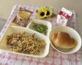 2学期の給食が始まりました!きょうの献立は、ミニコッペパン、焼きそば、えだまめ、...