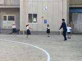 授業の後半、講堂から運動場に移動して、ダンスの練習を行いました。