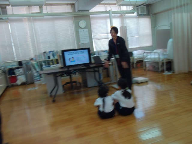 1年生の発育2測定、視力検査の様子です。最初に保健室利用のきまりについて話を聞き...