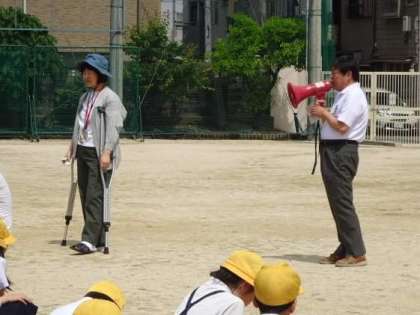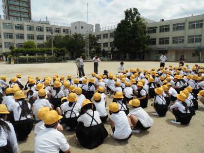 今日の設定は、家庭科室からの火災発生。放送の「指令」のあと、全学級が一斉に速やかに避難することができました。校長先生の講話では、してはいけない「おはし」の話。「おしてはいけません。「はしってはいけません。」「しゃべってはいけません。」この3つを守って、安全に体を守っていけたらよいと思います。