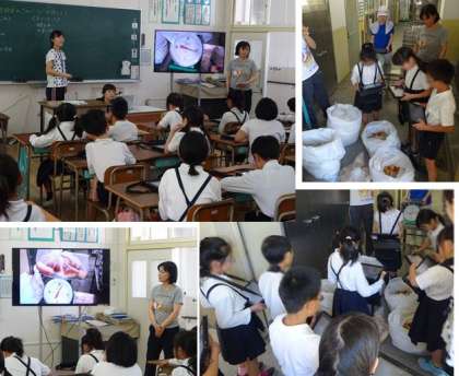 5月22日(水)第5時限目、4年1組で>研究授業を行いました。本校では、今年度は、こどもが意欲的に学ぶICT機器を効果的に活用した指導法を工夫しています。今日は、総合的な学習の時間の位置づけで、給食室から出るごみの量を知り、ごみを減らす工夫を考える学習でした。実際に給食室を見学して、今日の給食で出たごみの種類や量を調べ、タブレットで写真を撮って記録しました。教室に戻ってからは、気づいたことや思ったことを写真に書き込み、みんなでまとめをしました。