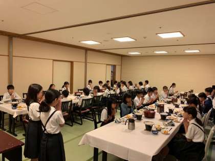 朝の集い朝食の様子です。みんな元気そうです。今日も楽しい1日が待っています。