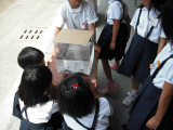 7月17日水曜日、1時間めの休み時間に2時間めの水泳学習の準備のためプールで作業をしていた時のことです。なんと、なつかしいゲンゴロウが、あの平泳ぎみたいな愛嬌なある泳ぎ方で泳いでいるではありませんか。バケツですくい、自分だけで見るのはもったいないと思い、昼休みに即席ゲンゴロウ鑑賞会をしました。