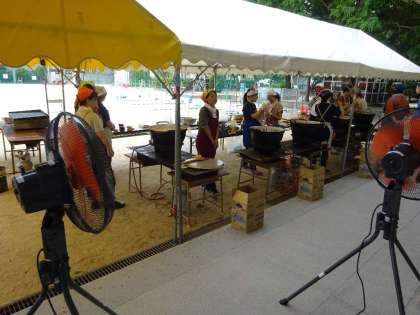 午後になると、お母さん方が『まごころカレー』の準備です。あとは時間を待つだけなのですが、お天気が心配です。