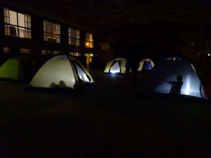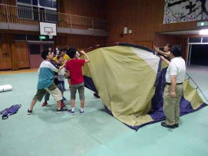 PTA校庭キャンプ4 公開日 2019/07/13 更新日 2019/07/16 事務室より 校庭キャンプ その4 カレーの後は、みんな講堂に集まって、お話を聞き、各学年の1位の発表がありました。 そのあとは、4年生の校庭キャンプです。テント設営(雨のため、講堂の中に張りました)をし、次にドラム缶風呂に入りました。そのあと、校内の肝試しに出かけました。 初めての、家庭を離れた宿泊体験の子も多かったようで、なかなか寝付けないようでした。 いいね(0)