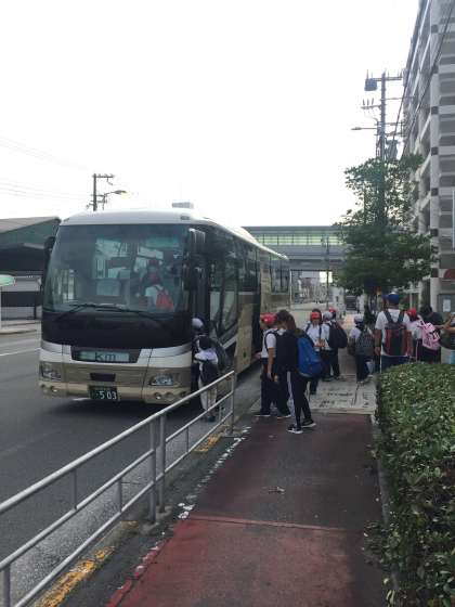 バスに乗り込み出発! 早朝から、たくさんのお見送りありがとうございました。 行ってきます!