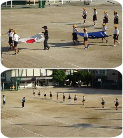 9月10日(火) 昨日から、運動会の練習が本格的に始まっています。今日は、午前中は運動場での練習も始まりました。