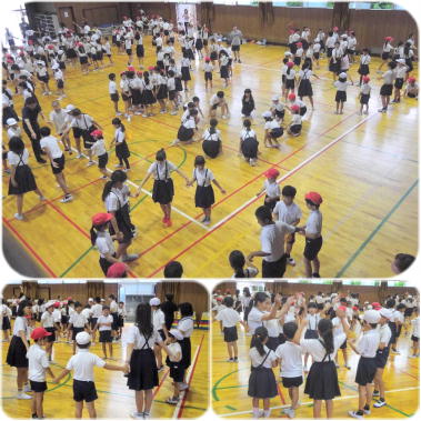今日は、先に練習を進めている高学年の子どもたちが、たてわり班のほかの子どもたちに踊りを教えてくれました。どの班も、集中して熱心に練習していました。